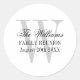 Pegatinas de reunión familiar con un elegante monograma de nombre. Etiquetas redondas de clase para el favor o como sellos para sobres/selladores. Diseño de tipografía de escritura con letra inicial monogramada. pegatinas blancos y negros de moda. Plantilla personalizable. También se puede utilizar para duchas de bebé, bodas o duchas de novias.