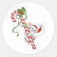 Pegatina de vacaciones mostrado con una estampa de caramelo festivo Santa de la letra del ratón. Personalizar o compra como está.