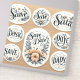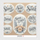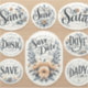 pegatinas de "Save the Date" con tipografía y diseño elegantes.