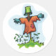 No te asustes, es sólo un espantapájaros. Están diseñadas para asustar a los pájaros. Este espantapájaros tiene un naranja encima y parece estar usando un balde en la cabeza. Sus brazos están extendidos y están parados en alguna hierba verde. Este diseño espantapájaros se ve genial en estos pegatinas. Perfecto para usted o como regalo