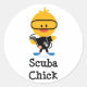 Una chica linda y divertida con traje de baño, máscara y un par de aletas en camisetas de Scuba Chick, tés, tazas, bolsos de té, papelería y más regalos de buceo, ropa y equipo para el avid, buceador femenino. Haga clic en el siguiente enlace para ver todas nuestras obras de arte de Chrissy H. © Chrissy H. Studios, LLC. Todos Los Derechos Reservados.
