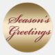 Pegatina de saludos de temporada - Elegante diseño de vacaciones con letras rojas "grabado en relieve" en fondo de "Relieve metalizado" dorado. Correspondiente franqueo, etiqueta de dirección, tarjeta de Navidades y tarjeta de saludo de todas las creencias.