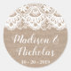 Utilice nuestros pegatinas de sello para sobres de arpillera y encaje para decorar sus sobres bodas. Estos clásicos círculos pegatinas también podrían utilizarse para muchos otros fines. La redacción es completamente personalizable - si necesita cambiar el tipo de letra, el color del tipo de letra, el tamaño o la ubicación de los cuadros de texto sólo tiene que hacer clic en el botón "Hacer clic para personalizar" para cambiar esas cosas. No olvide visitar nuestra amplia selección de elementos de coordinación, navegando por la colección Rustic Burlap y Lace Boda.
