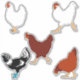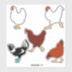 Cinco líneas simples de diferentes pollos, incluyendo un gallo de rock blanco, gallina roja de Rhode Island, gallina polaca, vínculo sexual rojo y gallina de roca blanca.