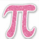 Pegatina con un símbolo pi con una textura purpurina rosa impresa.