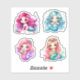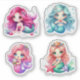 Sumérgete en un mundo de fantasía con esta hoja de pegatinas protagonizada por cuatro adorables sirenitas, cada una con cabellos de colores vibrantes y personalidades únicas. Perfectas para decorar agendas, cartas, libretas o cualquier superficie que necesite un toque mágico, estas pegatinas capturan la dulzura del océano y la alegría de lo imaginario. ¡Un detalle encantador para quienes aman los mundos submarinos y los personajes tiernos!