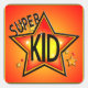 Una estrella de destello gráfico de la artista/diseñadora Charmaine Paulson en un pegatina. El pegatina tiene el texto "Super Kid".