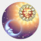 Este diseño pegatina muestra al Hombre en la Luna y la cara del Sol contra un cielo estrellado y colorido.