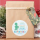 Lectura de etiquetas, portación de epinefrina, super héroe de alergia a alimentos. Pegatinas en alerta de alergia a alimentos. Recuerden a los demás las alergias alimentarias. Personalizar con nombre u otro texto. Ideal para el uso en la escuela o en guarderías para alertar a otros de una alergia alimentaria. Cambie el "nombre" por "epinefrina dentro" y sujételo a mochilas o bolsas médicas para alertar de que un dispositivo epinefrino está en la bolsa en funda de emergencia. Silueta verde del niño superhéroe sobre fondo de raya de chevron azul. Texto multicolor. Diseños de Lil Allergy Advocates www.lilallergyadvocates.com