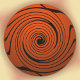 Una espiral fractal negra giratoria sobre un fondo naranja, perfecta para sellar tus saludos de Halloween a amigos cercanos y lejanos.