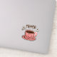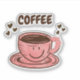 Pegatinas adorables con una taza de café sonriente y corazones.
