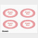 Red gingham da a estos personalizados pegatinas ovales estilo retro. Usar estos adorables pegatinas como etiquetas, para bolsas de regalo, cajas de regalo, paquetes, productos, un negocio, regalos de Navidades, etc... Personalizar al pegatina cambiando el nombre, el tamaño del tipo de letra, el estilo de letra, etc... El diseño es de arte original.