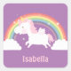 Personalice a esta pegatina con el nombre de los chicas y observe cómo su cara brilla mientras recibe este artículo. ¡Y puede usar esto para marcar sus libros y artículos! El diseño viene con un lindo unicornio con un mango y cola color de algodón rosa. Está volando entre el arco iris, la nube y las estrellas con sus pequeñas alas.