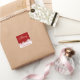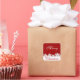 Pegatina de vacaciones mostrado con un estampado festivo de copos de nieve de Feliz Navidad. Personalizar o compra como está.