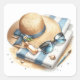 Vintage Summer Beach Pegatinas gorra, gafas de sol, toallas en la playa. Pegatinas de verano divertidos