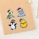 Esta adorable sábana pegatina contiene cuatro lindos animales, cada uno con un sombrero festivo de Santa. Hay un pingüino de plumón con una sonrisa alegre, una polluela amarilla luciendo alegre, una tortuga dulce con un gorra rojo rosado y un hipopótamo regordete con un espíritu vacacional. Cada animal está diseñado en un estilo encantador y caricaturizado con colores brillantes, perfecto para añadir un toque de brillo y calidez a sus tarjetas de vacaciones, regalos o artesanías.