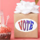 Los pegatinas de voto son una gran adición a tus postales para los votantes o folletos de campaña y eventos.