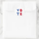 Diseño de letras de bloque creado por papel de tejido de corte manual. Design anima la concurrencia de votantes con su mensaje VOTE.