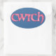 ¡Envíe un 'cwtch' galés a sus seres queridos! Una hoja de pegatinas ovales con la palabra galesa 'cwtch', que significa 'cuddle' o 'abrazo' en un guión celta, rellena con un patrón de Gingham de Red y White Check en un fondo azul profundo que puedes cambiar si lo deseas.