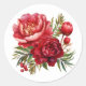 Pegatina se muestra en el redondo con una hermosa estampación de color acuático floral de color rosado-rojo oscuro. Personalizar este artículo o compra tal cual. Imagen con licencia