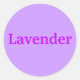 La palabra Lavender se imprime en lavanda sobre un fondo de lavanda claro, sobre pegatinas.
