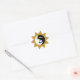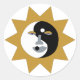 Un sol dorado con su cara en un yang blanco y negro en un pegatina