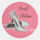Pegatinas de zapatos de tacón alto rosados y con brillo. Puedes agregar texto para personalizar esta pegatina de zapato de tacón alto con damasco rosa.