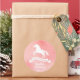 Pegatinas decorativos con un contorno de silueta de un unicornio que salta con un corazón diminuto en el flanco. El unicornio está rodeado de chispas mágicas. El cartel con texto no editable dice "celebración mágica". Ideal para decorar las bolsas de regalo para una fiesta de cumpleaños con temática de unicornio en honor al chica de cumpleaños. Personalice fácilmente con su mensaje fiesta.