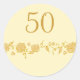 Una vid de rosas decora este pegatina del 50 aniversario de los bodas. Usa estos pegatinas de aniversario dorado para sobres, sellos para sobres, invitaciones, un 50 aniversario de bodas, un fiesta de 50 años de boda, etc... El diseño es de arte original.