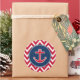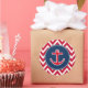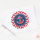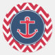Un patrón de chevron rojo y blanco brillante da a estos pegatinas de ancla un estilo náutico. El diseño es de arte original.