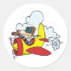 Este diseño es un avión personalizado. El avión es rojo y amarillo con un piloto. Este diseño de avión personalizado se ve muy bien en este Pegatina