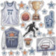Estos pegatinas temáticos sobre baloncesto serían perfectos para una aventura en un libro de recortes destacando el deporte para ti, los niños, o para un regalo. Estos pegatinas de personalizado están disponibles para la personalización del año, nombre, nombre del equipo y número de camiseta. Las peticiones personales siempre son bienvenidas.