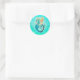 Pegatinas brillantes redondos con un bonito diseño de sirena. La sirena está en un caballito de mar azul