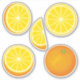 pegatinas de conjunto de iconos de naranja. Todo un naranja y una variedad de rebanadas.