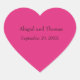 Pegatinas del corazón rosados calientes con sus nombres y fecha de boda. Vea nuestra colección de pegatinas del corazón para ver otros colores y opciones.