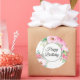 El pegatina de cumpleaños feliz redondo y grande se muestra con una impresión floral rosa bonito. Personalizar o compra como está.