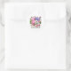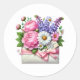 La pegatina se muestra en una bonita impresión artística de un ramo floral.