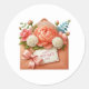 La pegatina se muestra en una bonita impresión artística de un ramo floral.