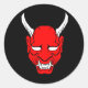 Clásicos pegatinas redondos con la cara del demonio rojo.