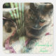 Un adorable gato con ojos verdes y su juguete midiendo cinta con la frase "Pertenece a un Tortie"- ¡Un delicioso pegatina para cualquier colección de pegatinas- o para cualquier amante del gato!