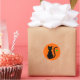 Personalizado de silueta de un gato negro con ojos verdes sobre un fondo naranja. Una estrella verde cuelga de la cola del gato.
