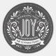WISHING YOU JOY & FAPPINESS: Brillante y alegre estilo de pizarra redonda de diseño navideño con banner retro, tipografía vintage en blanco y negro y elegantes remolinos. Personalice esta etiqueta decorativa ROUND de vacaciones con su nombre de familia o saludos de personalizado. Una manera contemporánea, clásica, moderna y elegante de enviar a sus amigos y seres queridos, con un encanto rústico y tradicional, los modernos y felices saludos de invierno. Nota de la Colección Chalkboard de Navidades de moda: Algunas partes de este diseño tienen licencia para uso comercial. © MakeMediaCo