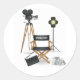 Te apetece como director de cine. Bueno, este diseño es perfecto para ti. Es de un grupo de directores de cine. El set tiene la silla de director de cine, la cámara, las luces, el tablero de escena y otros accesorios. Todo listo para empezar a filmar la película. Este diseño de conjunto de directores de cine se ve muy bien en estos pegatinas. Perfecto para usted o como regalo