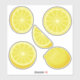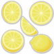 Pegatinas de juego de iconos de limón. Un limón entero y rodajas variadas.
