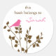 Bonito y pegatinas de libros de moda con un bonito pájaro rosado sentado sobre ramas marrones de árboles. Magníficas y únicas placas personalizadas.