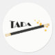 Ilustracion gráfico de la varita de un mago con el texto TADA de la artista/diseñadora Charmaine Paulson sobre un pegatina.
