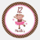 Pegatinas del Mes del Bebé con Mona Bailarina Adorable sobre Fondo de Lunares Blancos y Marrones