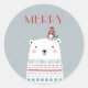 Este pegatina de vacaciones presenta un lindo ilustracion de oso polar con un pájaro en la cabeza. Se puede personalizar fácilmente con tu propio saludo y nombre.