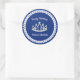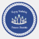 Lleve una fiesta especial de cumpleaños de princesa con estos pegatinas redondos personalizados sólo para la ocasión. Impreso con una tiara linda acentuada con gemas de color aguamarina (imitación). El fondo es el borde del círculo de encaje sobre azul oscuro. Simplemente edite el texto del nombre en el editor de texto "personalizarlo" fácil. Busque la invitación coincidente y todos los demás elementos de mezcla y coincidencia de fiestas en este tema en KidsUnique en Zazzle.