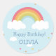 Pegatinas del partido de cumpleaños Rainbow personalizados ilustrados por Kathrin Legg